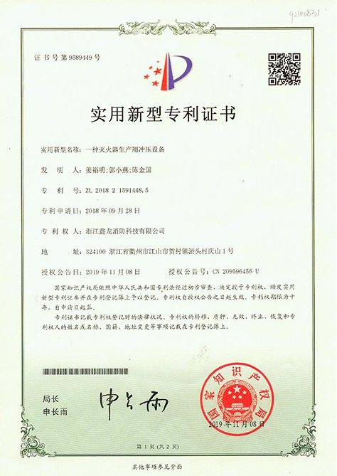 实用新型专利证书(背面)-一种灭火器生产用冲压设备