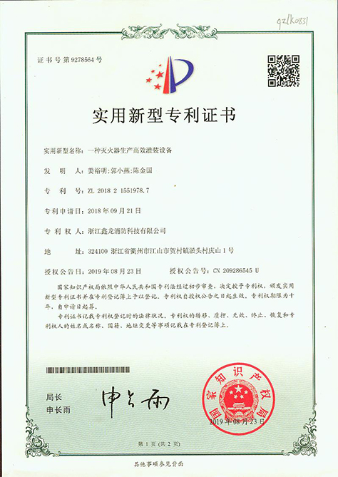 实用新型专利证书-一种灭火器生产高效罐装设备